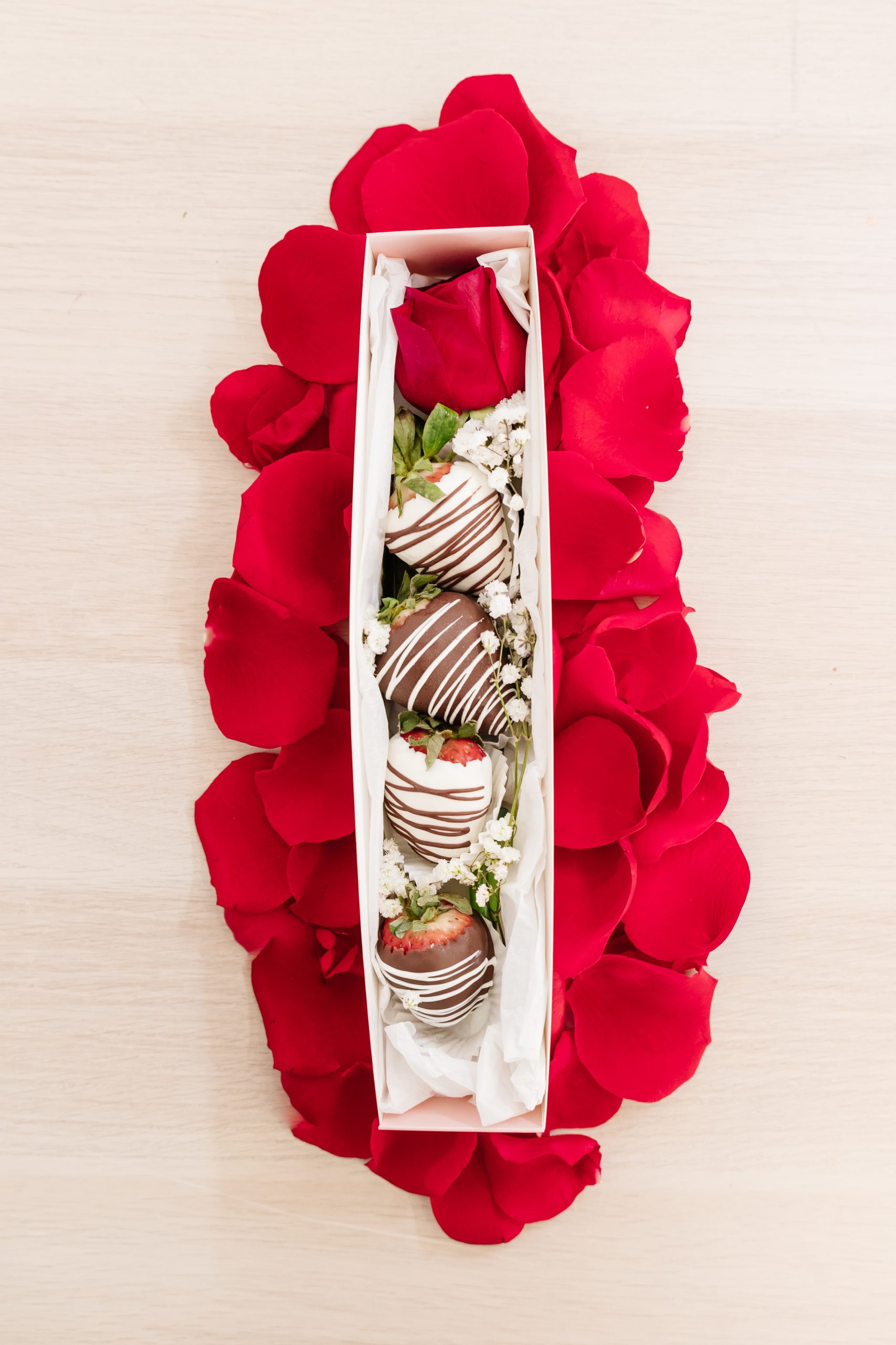 4 chocolate-covered strawberries + 1 rose