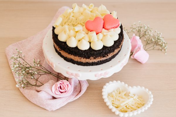 Génoise au chocolat, crème pâtissière au chocolat et crème au chocolat blanc